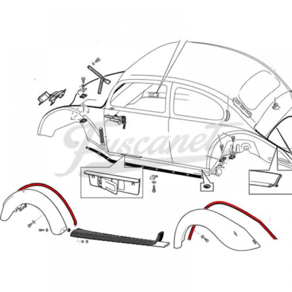 Etiquetas: galones, junta, guardabarros, guardafango, negros, vw, escarabajo