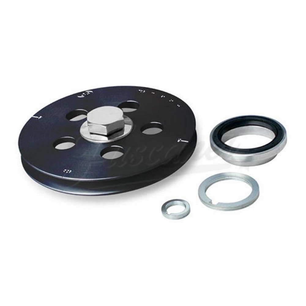 Polea de cigueñal billet negra , diametro 146mm (menor que la original) con reten CB Performance